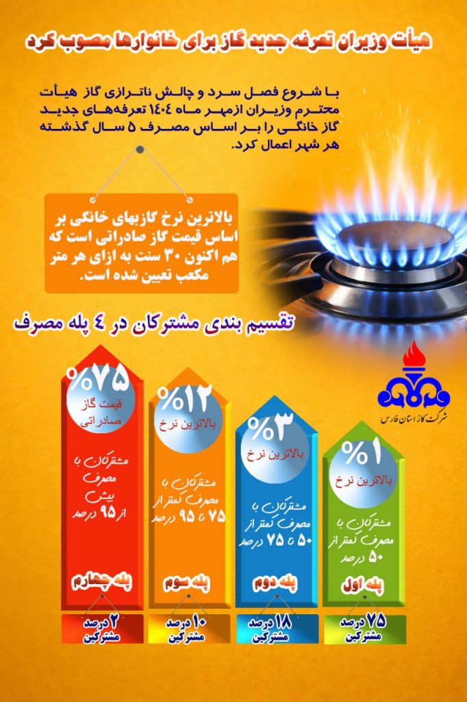در چارچوب اجرای نظام جدید تعرفهگذاری گاز طبیعی در بخش خانگی، گازبهای مشترکین دهکهای اول و دوم درآمدی تا سقف پله اول مصرف به صورت کاملاً رایگان محاسبه میشود.